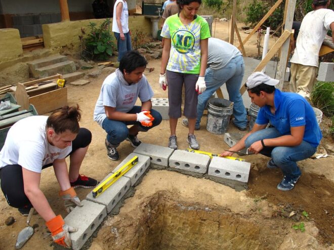 Volunteers work with families to improve their health through building in-home infrastructure projects.